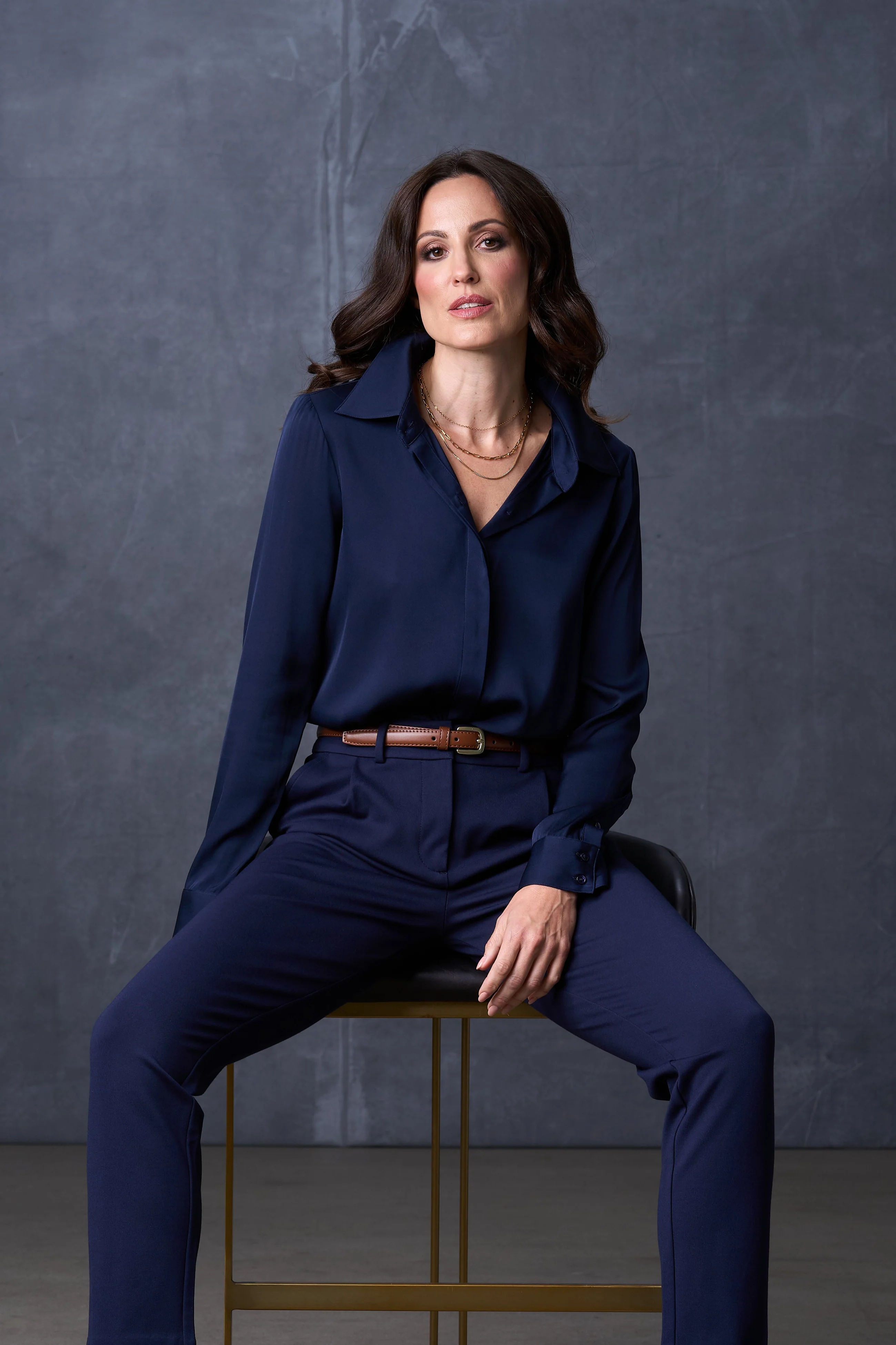 The Grace Silk Long Sleeve Blouse Navy