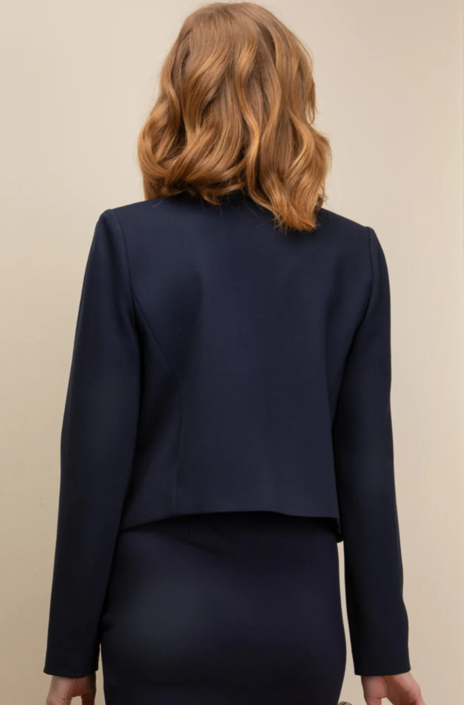 Crafted from our signature SmoothingStretch fabric. A perfect balance of tailored structure and relaxed ease, this collarless jacket exudes sophistication while maintaining effortless wearability, thanks to its cropped length.
